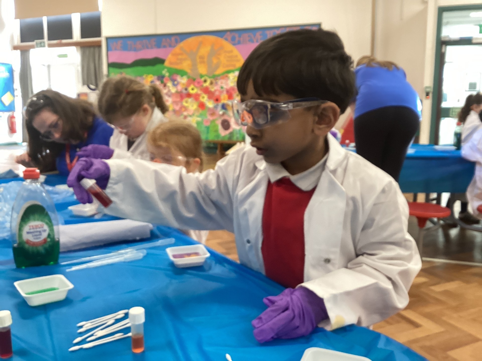 We have had a delightful week with some wonderful science activities in school.  We must say a huge thank you to our fantastic team of scientific parents/volunteers who have come in to share their knowledge with the children.  All classes have taken part in an experiment/activity and have thoroughly enjoyed them.  Below are pictures of the DNA extraction from strawberries which Year 5 achieved on Monday morning and Ducklings class carry out a magic milk experiment.
